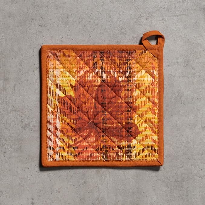 Maison d' Hermine 100% Cotton Oven Mitt & Pot Holder Set (7.5"x13" & 8"x8") Heat Resistant BBQ Cooking Gloves with Loop for Thanksgiving Christmas Decorations Handling Hot Pans (Thanksgiving Tartan)