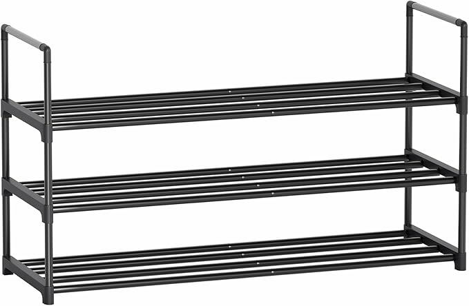 Metal Shoe Rack, 3-Tier Shoe Organizer with Adjustable Shelf Height, Sturdy Shoe Storage Shelf, Perfect for Front Door Entrance, Closet & Entryway, Easy to Assemble, DIY Layering Options (S - 3 Tier)