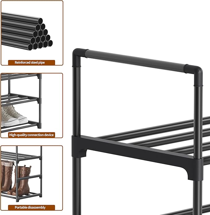 - 【STURDY AND DURABLE DESIGN】:Crafted from robust metal tubes and reinforced with high-quality plastic connectors, this metal shoe rack ensures long-lasting stability and strength. Designed to withstand everyday use, it provides a reliable shoe storage solution that won’t deform over time—perfect for your shoe shelf in high-traffic areas