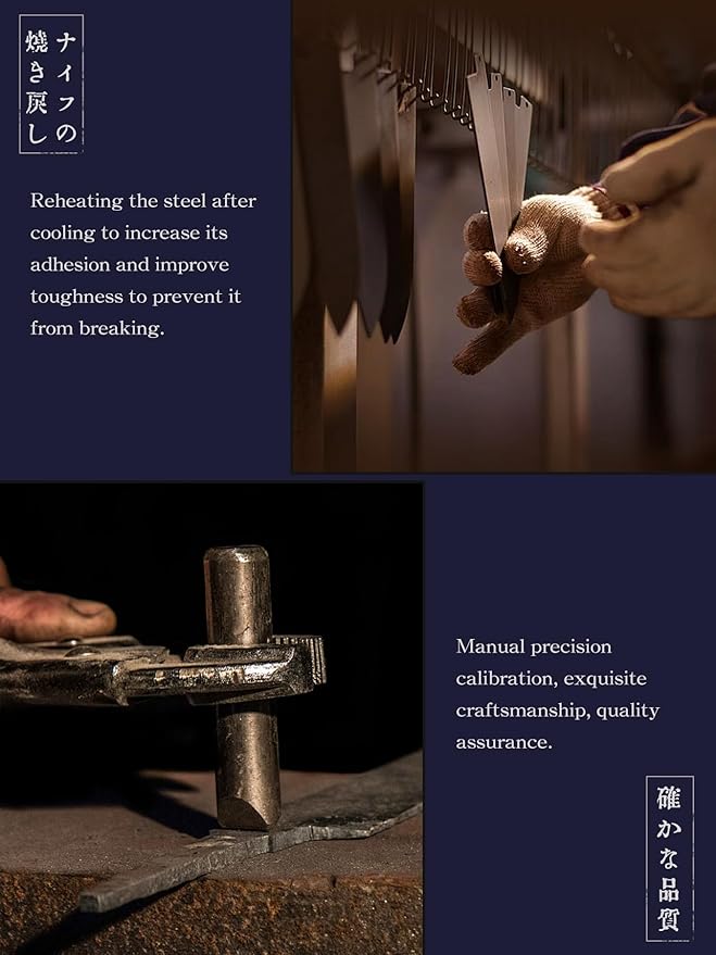 - 【Traditional Hand Forging】Each kitchen knife is the result of 60 days of meticulous craftsmanship by a craftsman; The hand-forged hammer pattern and layered lines naturally formed by multiple foldings of 9 layers of steel are all testimonies of Japanese traditional knife-making craftsmanship