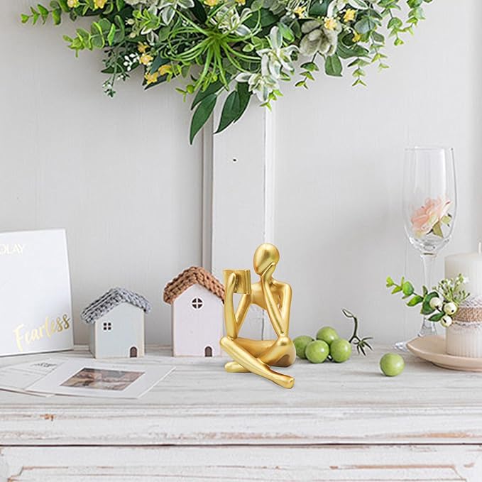 Bookshelf Decor, Golden Reading Thinker Sculpture Figurine, Coffee Table Decor, Entry Way Table Home Decor, Decorative Statue for Living Room, Office, Bedroom, Gift