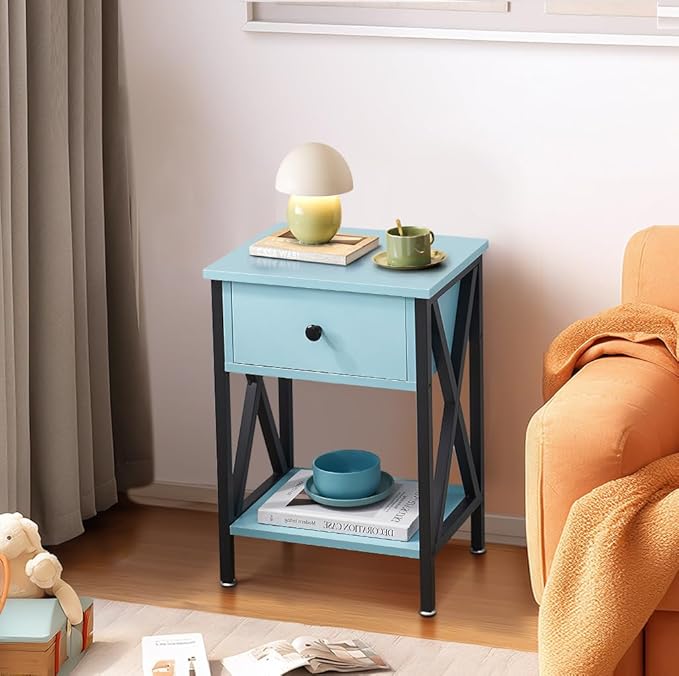 - The nightstand is made with environment-friendly MDF Board and "X structure" metal legs. The wooden end table is strong enough to support table lamps, books, photo frames and other things on it.