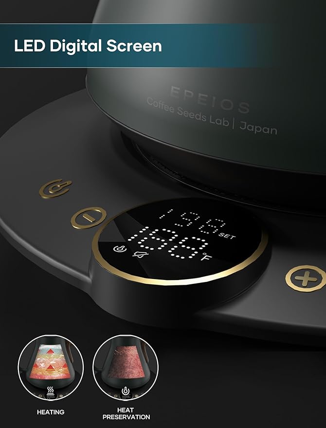 - ±1℉ Precise Temperature Control – Smart power adjustment keeps water within ±1℉ of your target, so every brew is café-precise and full of flavor.
