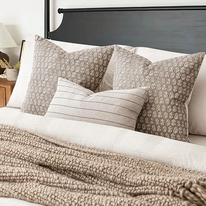 Foindtower Set of 2 Decorative Neutral Floral Print Throw Pillow Covers Vintage Accent Farmhouse Cushion Covers Boho Home Decor for Sofa Couch Chair Bedroom Living Room Outdoor,20×20 Inch,Tan Taupe