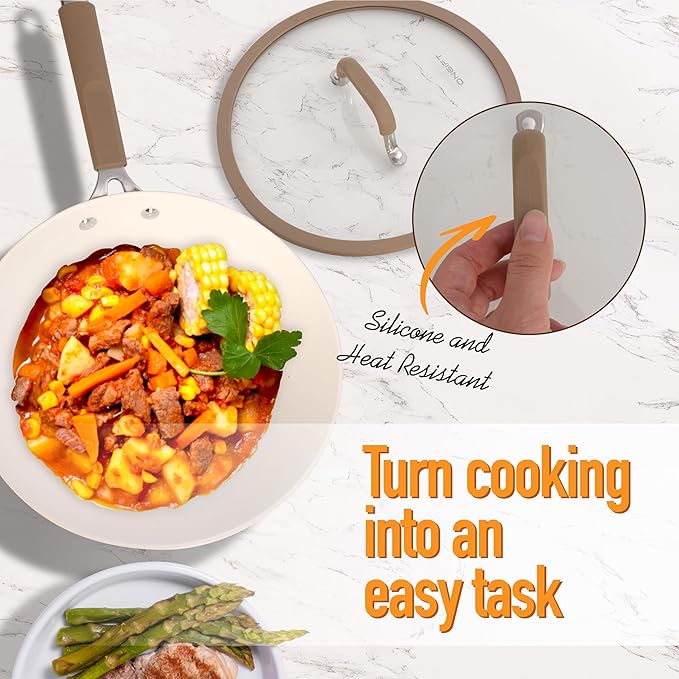 - Ceramic Coating: Our nonstick pots and pans are made of cast aluminum with natural ceramic coating, without PTFE, PFOA, PFAS, lead and cadmium, ensuring cooking experience for you and your family