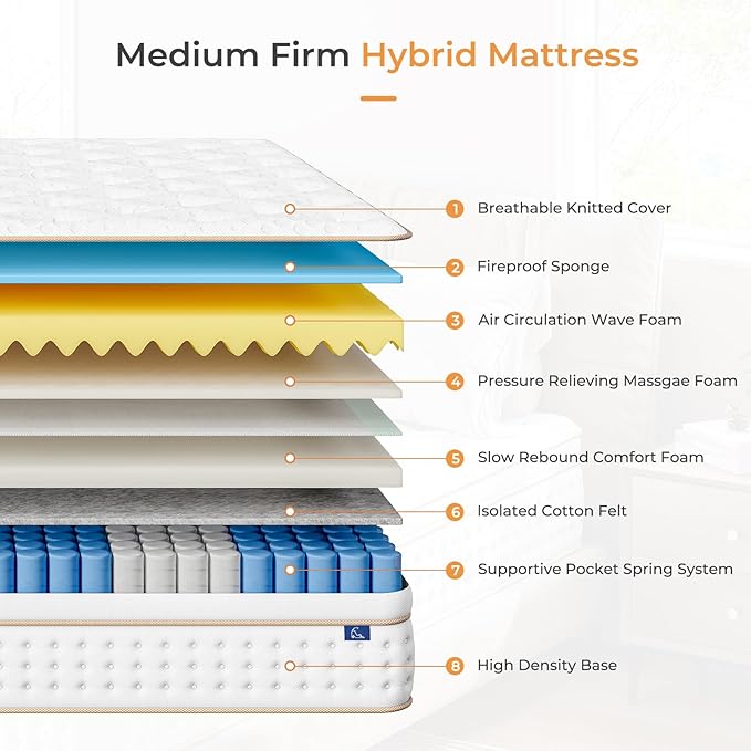 - 【Support and Comfort】- Vesgantti full mattress combines premium memory foam with individually pocketed coils, which work together to provide targeted support and relieve pressure, so you awake feeling refreshed and free of aches and pains.