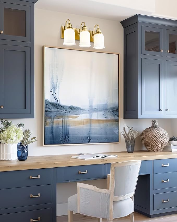 - 【Enduring】Brighten your bathroom mirror with a high-quality vanity light designed with brushed gold finish metal and thickened bell-shaped fluted frosted milk white glass. It can be mounted up or down to add an elegant atmosphere to your home and bring more brilliance to your life!