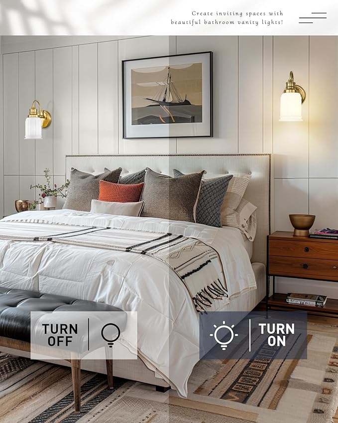 - 【Wide Application】This bathroom vanity wall sconce is suited for any decoration style, such as farmhouse, industrial, retro, traditional, modern, etc. Ideal as vanity lights for bathroom over mirror, sconces wall lighting for dressing table, powder room, art display, kitchen, dining room, hallway.