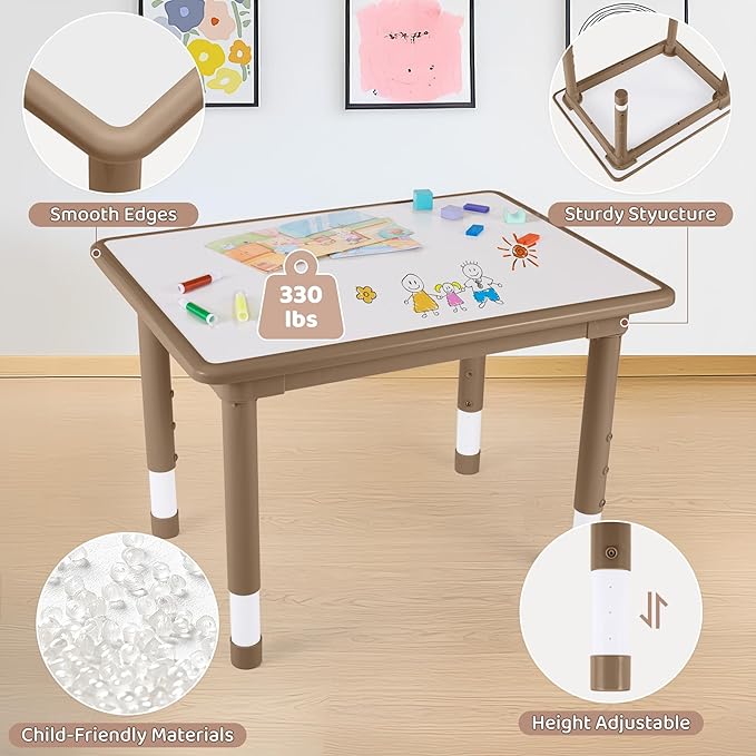 Kids Table and 4 Chairs Set, Height Adjustable (17.7"-26.1") Toddler Table and Chair Set, Multi-Activity Table with Graffiti Desktop, Children’s Table and Chairs for Classroom, Home & Daycare