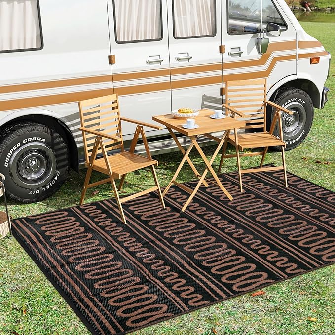 Beeiva Outdoor Area Rug, 6x9 Large Outdoor Rug Waterproof, Reversible Plastic Indoor Outdoor Rug for Deck, Balcony, Backyard, Porch, Camping, Picnic - Black/Brown