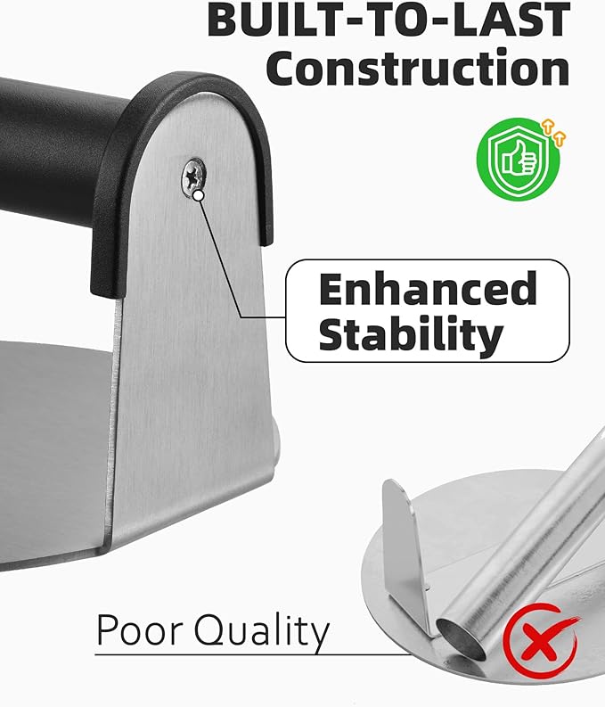 - Reinforced One-Piece Design for Durability: Built to last, our smashed burger press boasts a reinforced one-piece structure, secured with screws for added strength. This robust design eliminates the risk of breakage, making it a must-have hamburger press for any home cook who enjoys grilling up delicious meals regularly