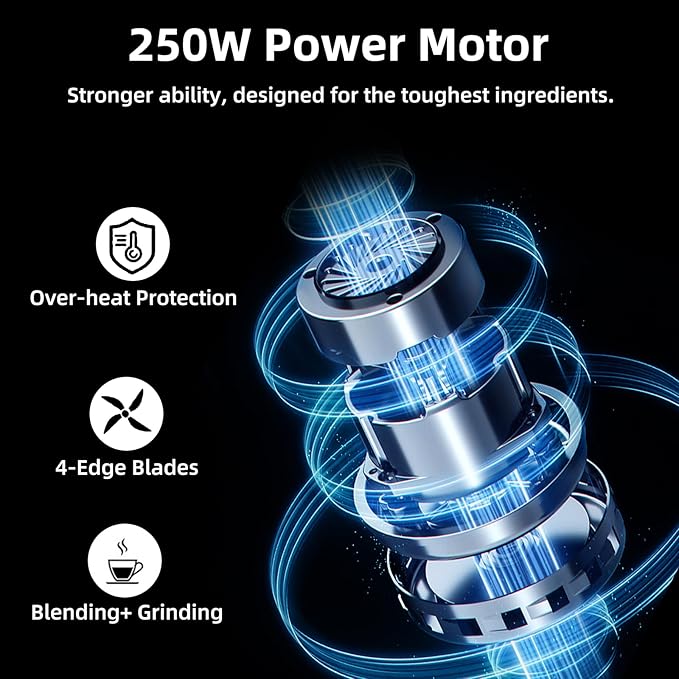 - Efficient Blending Performance Equipped with a powerful blending blade, this portable blender easily handles smoothies, shakes, food prep, and even frozen ingredients. Its high-performance motor ensures consistent, smooth results every time, making it perfect for busy mornings or quick meals.