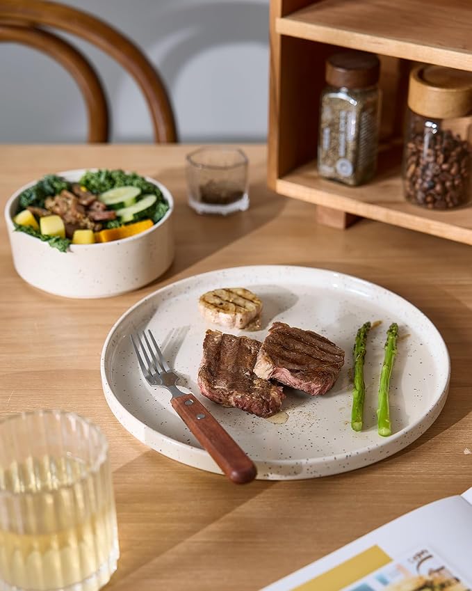 - WHAT WILL YOU GET: This dinnerware set includes 8 pieces of 10.25-inch dinner plates, 8 pieces of 8-inch salad plates, and 8 pieces of 5.5-inch cereal bowls. It's a great combination for a family dinner party.