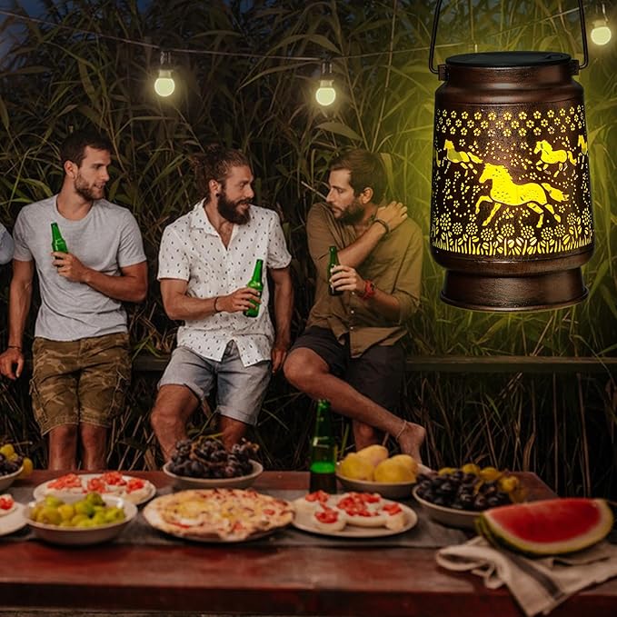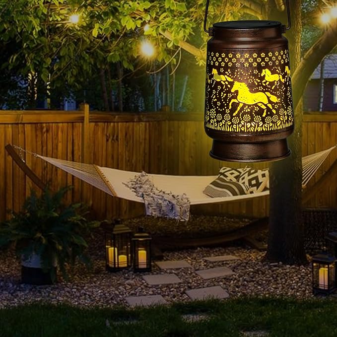 - 【Interesting outdoor/indoor decoration】Retro appearance, gold copper color, hollow metal veneer, accompanied by gorgeous and elegant horse patterns, romantic and warm patterns make your garden full of unique fun. It's even like a night light, illuminating your heart and making you happy.