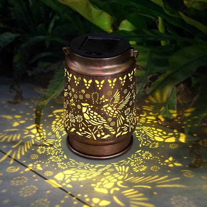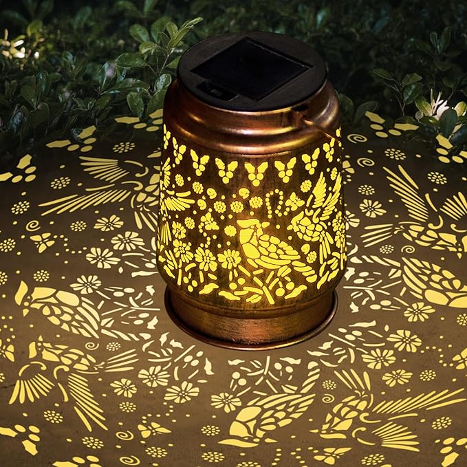 - 【Interesting outdoor/indoor decoration】Retro appearance, gold copper color, hollow metal veneer, accompanied by gorgeous and elegant cardinals patterns, romantic and warm patterns make your garden full of unique fun. It's even like a night light, illuminating your heart and making you happy.