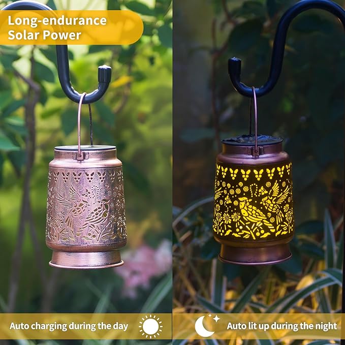 - 【Solar energy】Solar panels store natural energy and illuminate without electricity. Our outdoor decorative mobiles lamp is waterproof and durable, and it is very suitable for hanging on the garden or terrace. Easy to use and easy to hang, no need for wires or USB. No maintenance required. Simply let nature power the. If you like environmentally friendly products, this is for you!