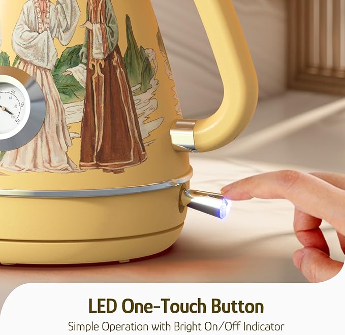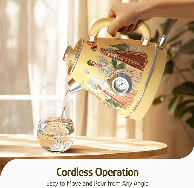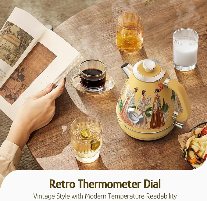 Hazel Quinn Retro Electric Kettle - 1.7 Liters / 57.5 Ounces Tea Kettle with Thermometer, All Stainless Steel, 1200 Watts Fast Boiling, BPA-free, Cordless, Automatic Shut Off - Finery