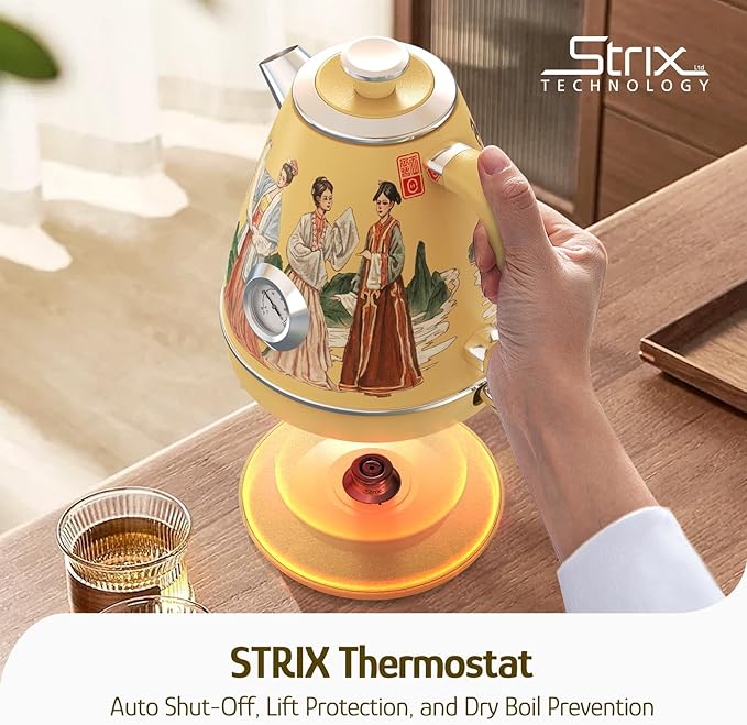• Triple Security Guarantee: STRIX thermostat technology provides triple security for your use. Including 1-Auto shut-off when water begins to boil; 2-Auto shut-off when the kettle body is lifted from the base; 3-Prevent the kettle from turning on with no water inside.