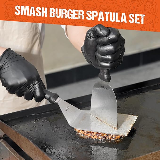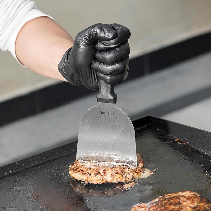 - 1 Chopper/Scraper: Scraper with sharp edge for cleaning residue off the griddles effectively, double as a chopper for cutting meat and veggies when cooking. It is very suitable for flipping vegetables when using chopper and spatula together.