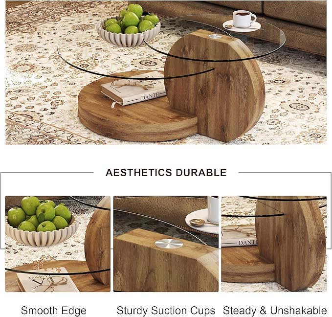 - [STRONG AND DURABLE]-Our living room coffee table consists of tempered glass table top and thick MDF wood boards, the frame structure is strong and stable, and the base is made of thickened material for stability and durability.
