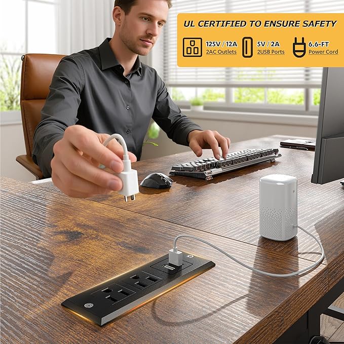 - 【Desk with USB Charging Ports & Power Outlets】The small computer desk is engineered for modern tech needs, this computer deskin tegrates 2 AC outlets and 2 ports. Effortlessly power your PC rig, console, mobile devices, and peripherals simultaneously. Its more humanized design of outlets can also avoid the cable mess in multi-device charging.