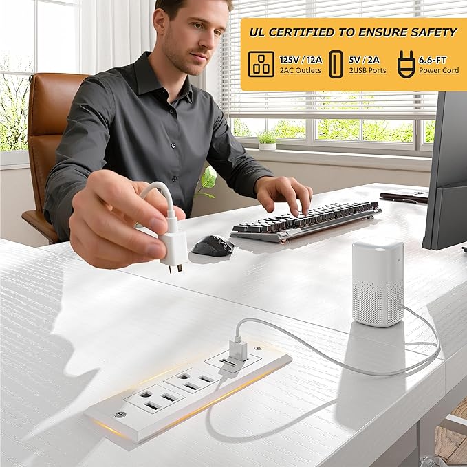 - 【Desk with USB Charging Ports & Power Outlets】The small computer desk is engineered for modern tech needs, this computer deskin tegrates 2 AC outlets and 2 ports. Effortlessly power your PC rig, console, mobile devices, and peripherals simultaneously. Its more humanized design of outlets can also avoid the cable mess in multi-device charging.