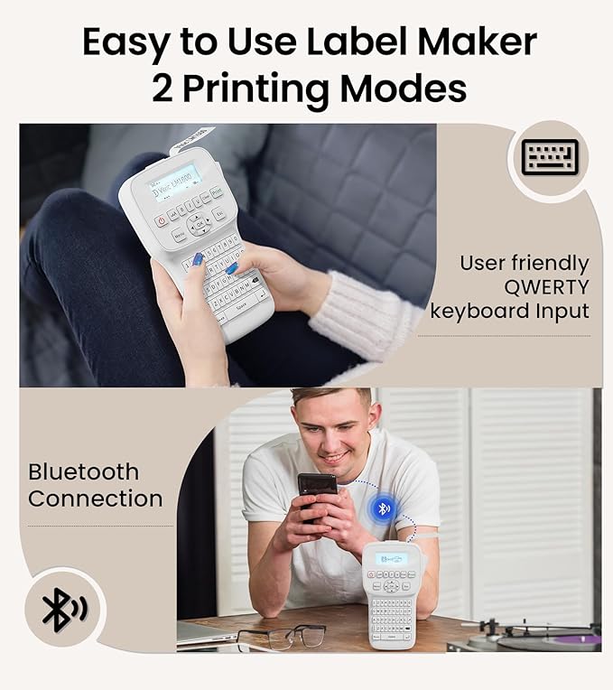 - Two Printing Options: Labeler Machine with Tape supports both keyboard and Bluetooth printing options, allowing users to choose the most suitable method based on their needs, making the printing process more flexible and convenient.