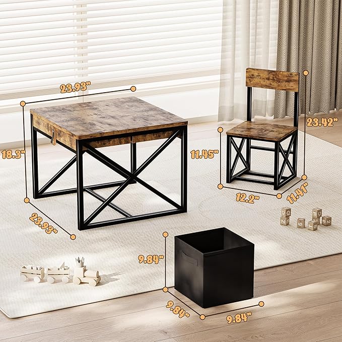 - 【Smart Storage Solution】: Ingeniously designed with storage space under the chairs, this table and chairs set for toddlers helps keep clutter at bay. Use it to store toys, books, or art supplies, fostering a tidy and organized play-learn space.