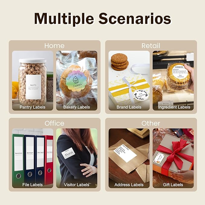 Phomemo M150 Label Maker, Upgraded Bluetooth Label Printer, Compatible with Phone, PC & Tablet, with 1 Roll Free Label Paper, Thermal Portable Sticker Printer Machine for Address,Bracode, Jar, Beige