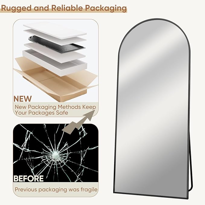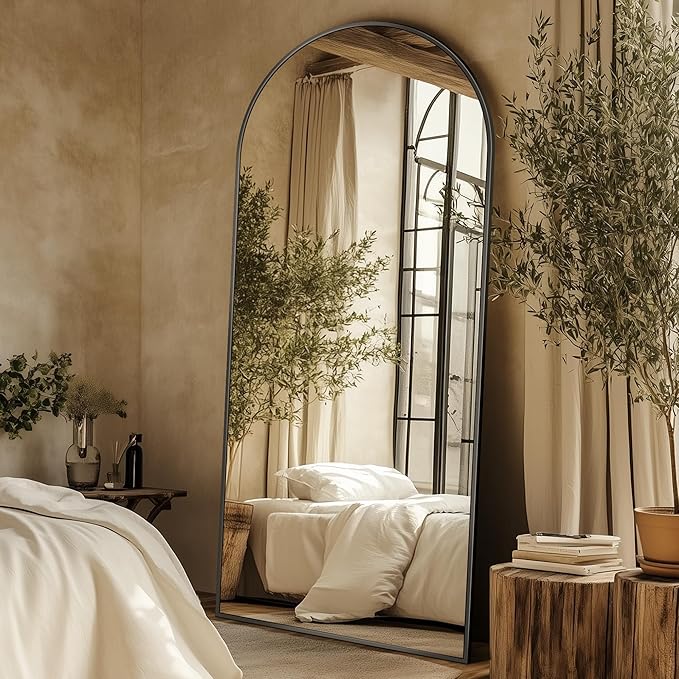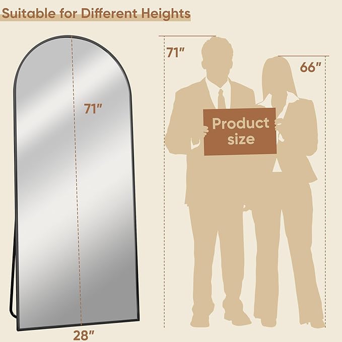 - 🪞【GRACEFULLY ARCHED DESIGN】The arched-top floor mirror is made of high quality aluminum alloy frame. The mirror frame is thin and lightweight and can be moved easily. Make your room look noble and elegant.