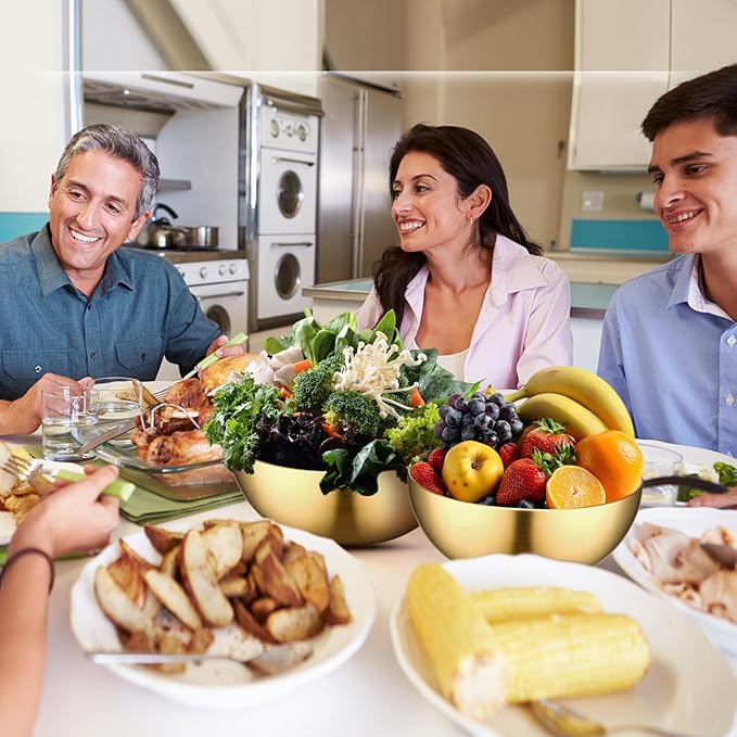 - Easy to Clean: our gold serving bowls are made with exquisite polishing and drawing processes, making the surface of the gold metal cereal bowl smooth and delicate, comfortable to touch, at the same time, its integrated roll is smooth and smooth, will not hurt the mouth and hands, making our stainless steel salad bowls smooth surface, no rough spots, so that stains are not easy to stay on our plates, easy to clean