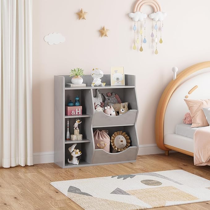 - Smart Storage Solution: Featuring 3 spacious compartments and 2 tilting bins, this toy storage cabinet keeps your child's organized and within reach—say goodbye to toy avalanches and hello to tidy playtimes!