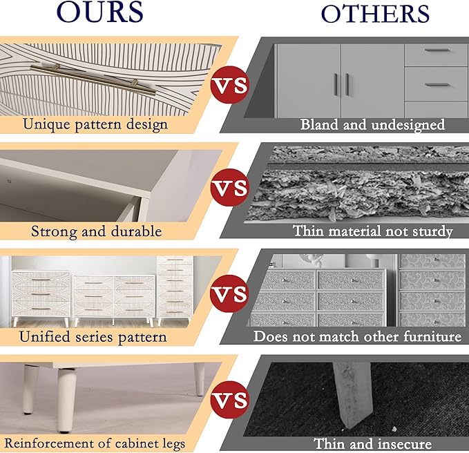 - 【Easy Setup, Thoughtful Design】Assembly is made simple with our concise instructions, allowing you to set up the dresser quickly and effortlessly. Every piece is carefully packaged to prevent bumps during delivery, ensuring your dresser arrives in pristine condition. The engineering board's waterproof coating adds durability, while the sleek design ensures a perfect fit in any room. With an intelligent blend of practicality and aesthetics, this dresser is a must-have for any modern home.