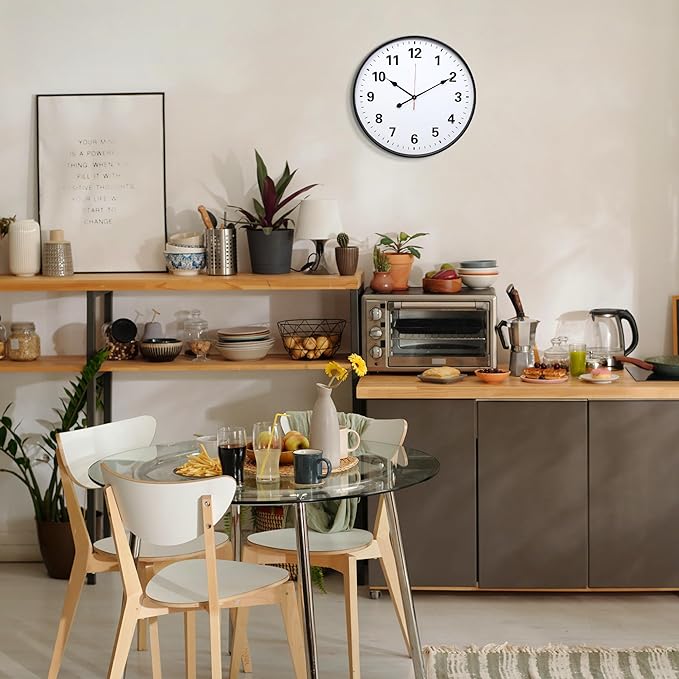 - 【RETRO WALL CLOCK】 This classic wall clock will dress up any occasion perfectly with its simple design. It combines metal frame with HD glass cover and retro hands to give you a vintage visual experience. It is suitable for any place like kitchen, living room, bedroom, office, school, above a fireplace, restaurant, pool and more. It is also a good gift idea for family and friends.