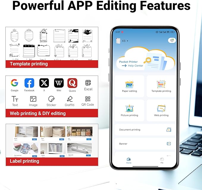 - Bluetooth & APP-Controlled: Connect seamlessly to iOS/Android via Bluetooth and use the "Snap & Tag" APP (100+ free templates). Print directly from your phone gallery, social media, or custom designs with one tap