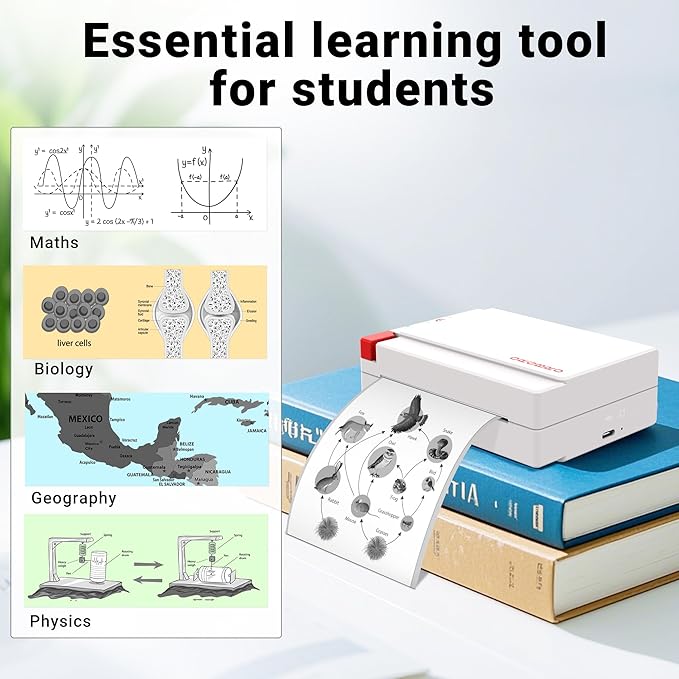 - 300 DPI HD Photo Printing: This thermal sticker printer with 300 DPI resolution (higher than standard 200 DPI) delivers crisp, detailed images and text—perfect for printing photos, detailed to-do lists, or study notes without ink or toner. Also protects your child's eyes during study or play
