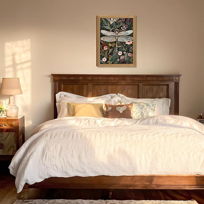 - 【Classic Vintage Wall Art】This mural combines classic vintage style with exquisite dragonfly and floral patterns to create a unique vintage atmosphere, adding elegance and natural atmosphere to your home. Perfect for decorating your bedroom, office, living room or study