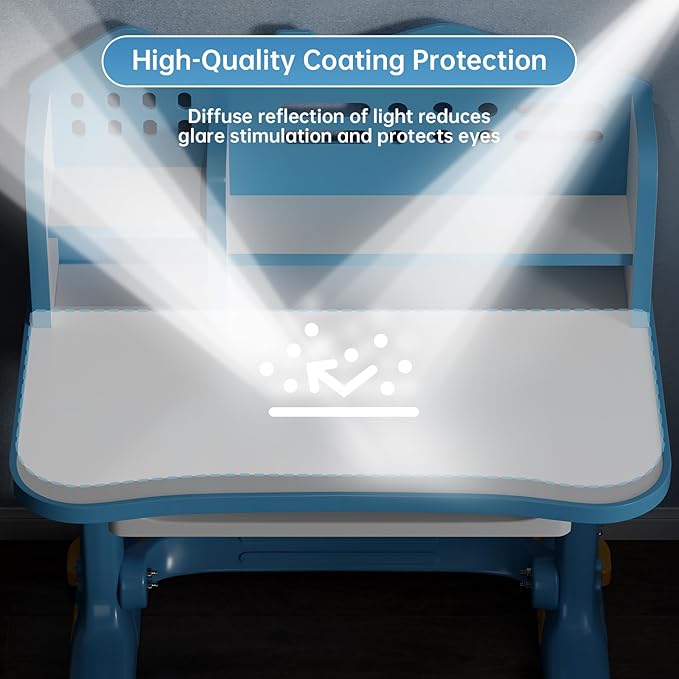 - 【Ergonomic Design】Xaperexi height adjustable child study desk follows an ergonomic design, equipped with rounded corners, curved edges, and an anti-pinch device to keep your child safe. This desk setup promotes proper posture and helps improve learning efficiency.