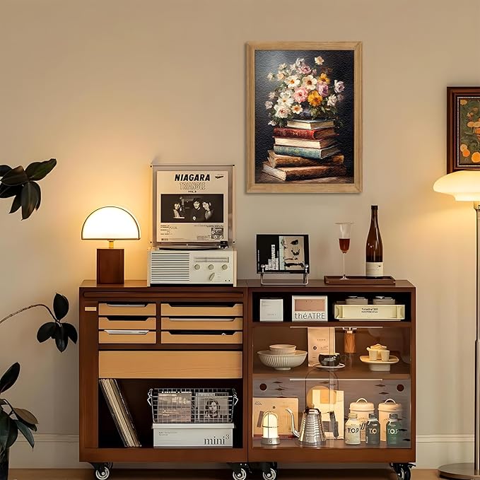 - 【Charming Vintage Floral Art】This vintage floral textured wall art piece uses an elegant oil painting style to depict flowers and books, bringing a hint of dark preppy decor to your home. Perfect for decorating your bedroom, living room, or study, creating a moody and sophisticated atmosphere.