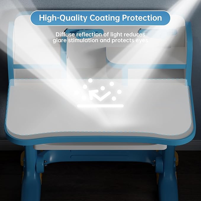 - 【Functional Study Desk Design】Xaperexi kids desk set includes a built-in bookstand and storage drawer for keeping books, stationery, and other essentials organized. With a spacious, widened desktop, it’s ideal for both boys and girls to write, draw, and study comfortably. The functional design makes it a great addition to any home or school environment, offering long-lasting durability and comfort.