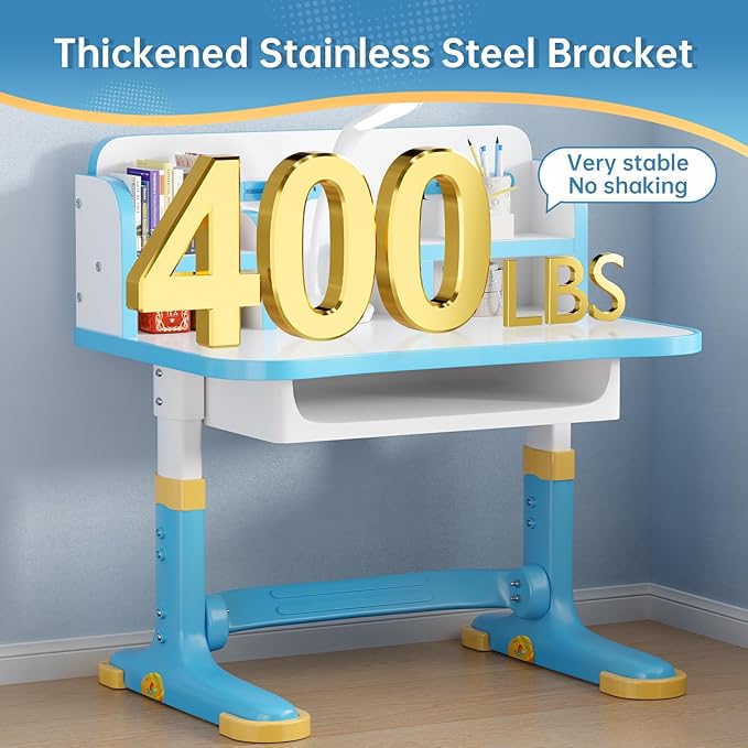 - 【Safe & Durable】Xaperexi kids desk and chair set is made with a high-quality MDF desktop and features legs constructed from a strong steel frame, ensuring maximum safety for your child. The non-slip foot pads provide stable support, preventing any wobbling for long-term use. Additionally, the desk and chair can hold up to an impressive 400lbs.