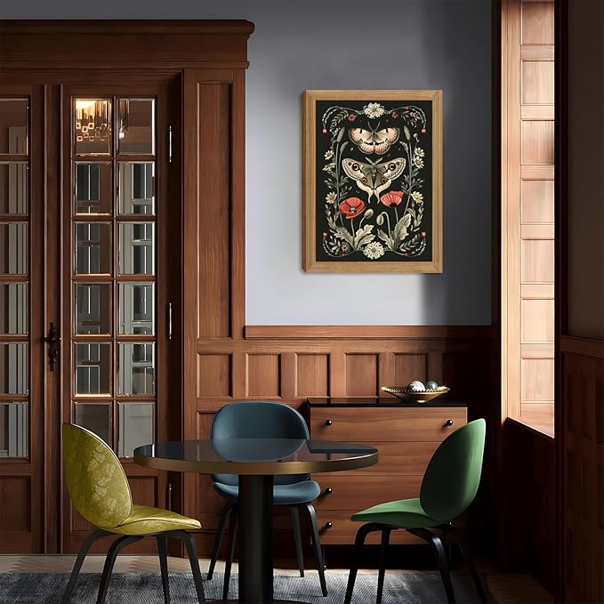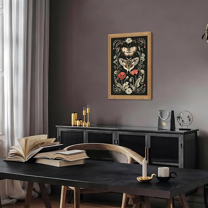 - 【Classic Vintage Wall Art】This mural combines classic style with delicate moth and floral patterns to create a unique vintage atmosphere, making your home space more elegant and artistic, perfect for decorating your bedroom, office, living room or study