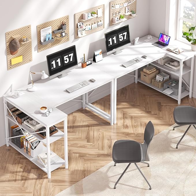 - 【Stable & Sturdy Construction】The l gaming desk with storage shelves is made of a solid metal frame and a wooden tabletop, with 2 X-frames so that you can work or play without shaking, very stable. Adjustable non-slip pads protect your floor from scratches while also reducing noise. The waterproof wooden tabletop can be wiped with a wet cloth, easy to clean.