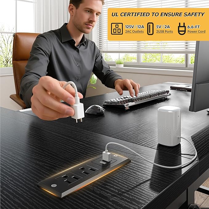 - 【Desk with USB Charging Ports & Power Outlets】The Computer desk is engineered for modern tech needs, this computer deskin tegrates 2 AC outlets and 2 ports. Effortlessly power your PC rig, console, mobile devices, and peripherals simultaneously. Its more humanized design of outlets can also avoid the cable mess in multi-device charging.
