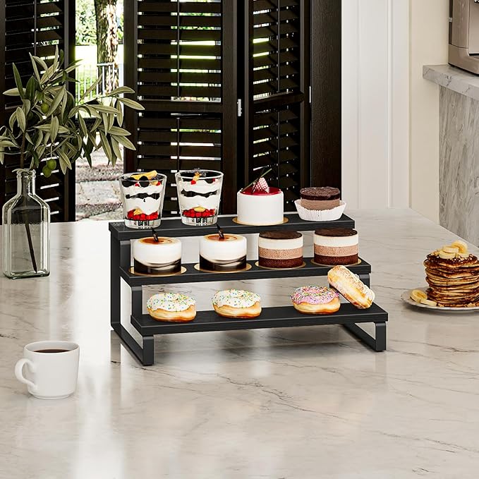 Giikin 3 Tier Display Stand Riser, Wooden Display Stand Perfume Organizer Stand Cupcake Stand Holder, Tiered Display Stand Risers Display Shelf for Home and Shop, Black