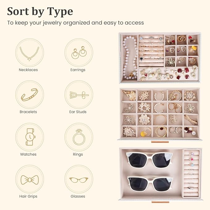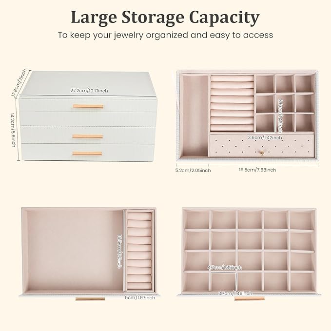 - Perfect Gift Idea: This jewelry case has a stylish and classic appearance, suitable for all women girls. Whether it's for a girlfriend, mother, daughter, or friend, this women’s jewelry box is the perfect gift choice. Whether it's Christmas, New Year, Valentine's Day, Thanksgiving, Mother's Day, or birthdays, it will always be a delightful gift