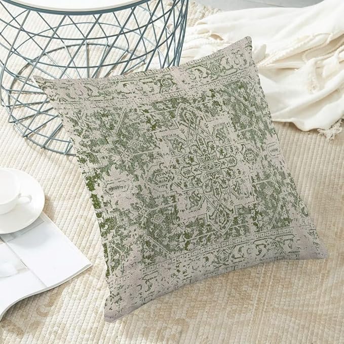 BETGINY Sage Green Ethnic Boho Throw Pillow Covers 18 x 18 Inch Pack of 2, Bohemian Carpet Pattern Decorative Pillow Cases Vintage Outdoor Linen Farmhouse Cushion Case for Bedroom Home Sofa Decor
