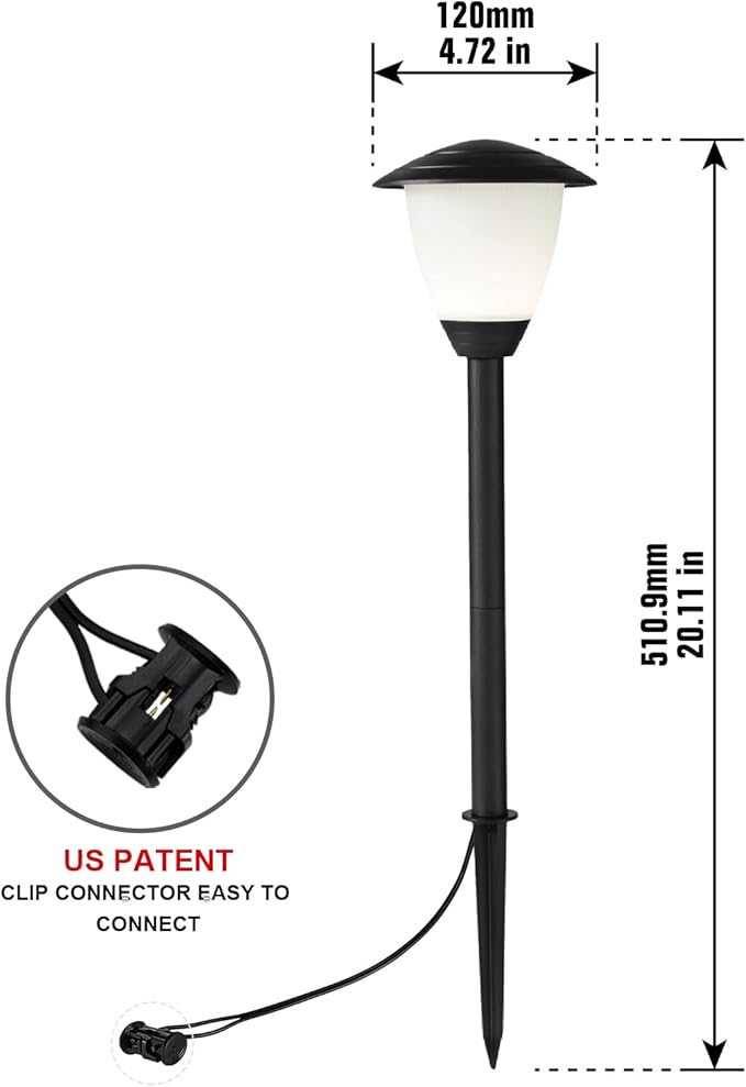 - Simple Installation: Featuring an integrated pole for straightforward assembly, this walkway light includes a 3.3ft ETL Listed light wire, foot stake, and a fastlock2 low-voltage wire connector. It connects easily to existing systems (low voltage cable and transformer not included) and operates safely on 12-24V AC/DC