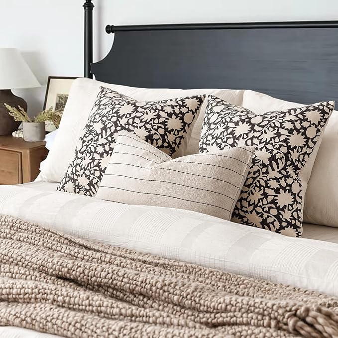 Foindtower Set of 2 Decorative Neutral Floral Lumbar Throw Pillow Covers Accent Farmhouse Cushion Covers Boho Vintage Pillowcase for Couch Sofa Bedroom Living Room Home Decor Outdoor12×20 Inch,Black