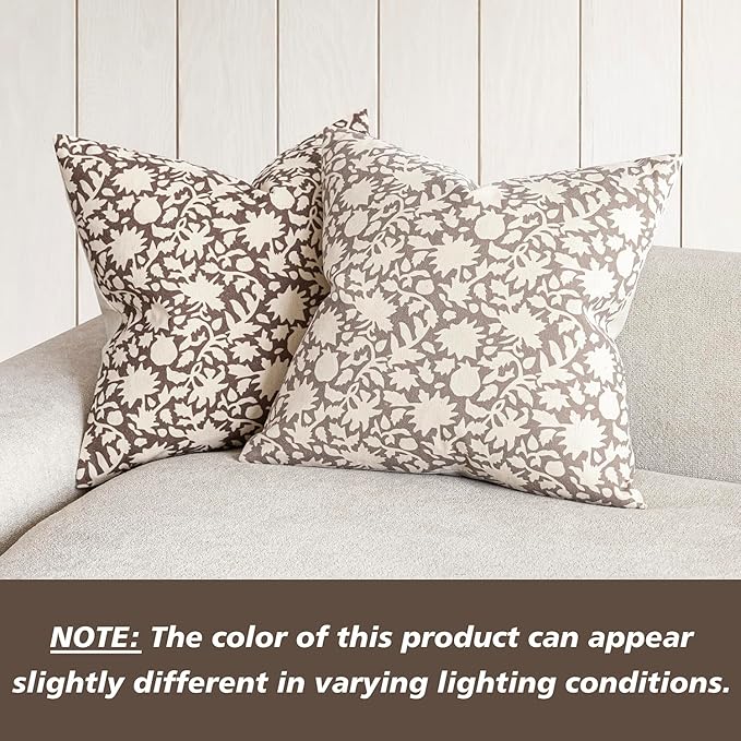 Foindtower Set of 2 Decorative Neutral Floral Throw Pillow Covers Accent Farmhouse Cushion Covers Boho Vintage Pillowcase for Couch Sofa Bedroom Living Room Home Decor Outdoor,24×24 Inch,Brown